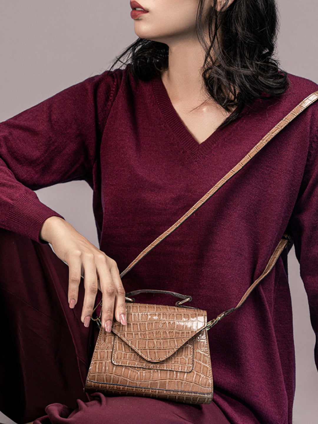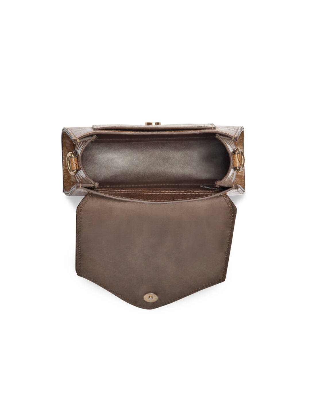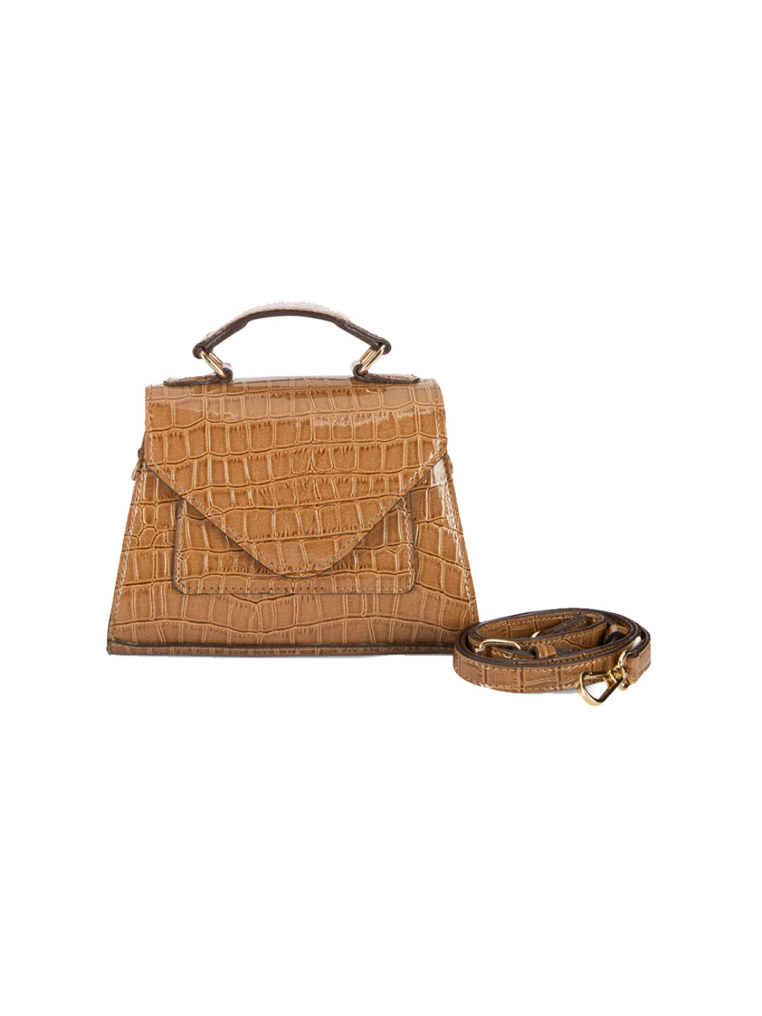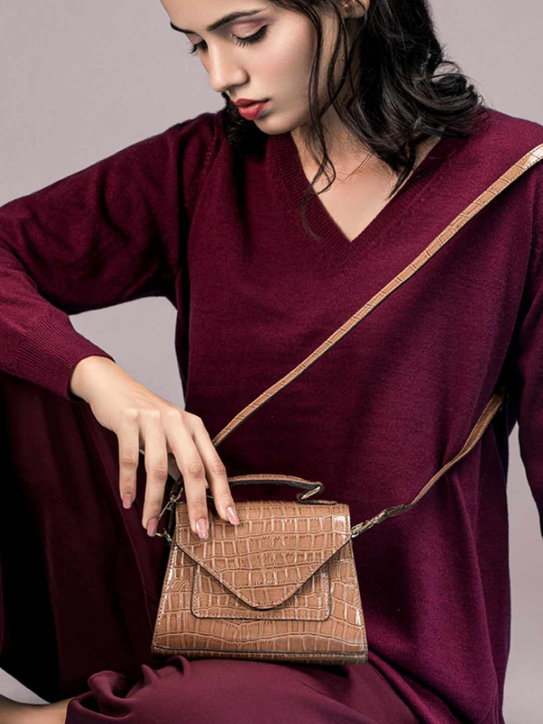 Introducing our Brown Croco Leatherette Small Structured Handbag, the perfect accessory for any occasion. Crafted from eco-friendly materials with reinforced stitching, this lightweight design features a detachable sling and an adjustable strap length for your convenience. The inner lining offers excellent durability and the magnet closure ensures security. With its water-resistant properties, you can trust this handbag to protect your belongings. Complete with a front pocket and available in additional colors, this handbag combines style and functionality effortlessly. With dimensions of 17.5*6.5*13 cm, it's compact yet spacious enough to hold all your essentials. Elevate your fashion game with this chic and versatile handbag today.