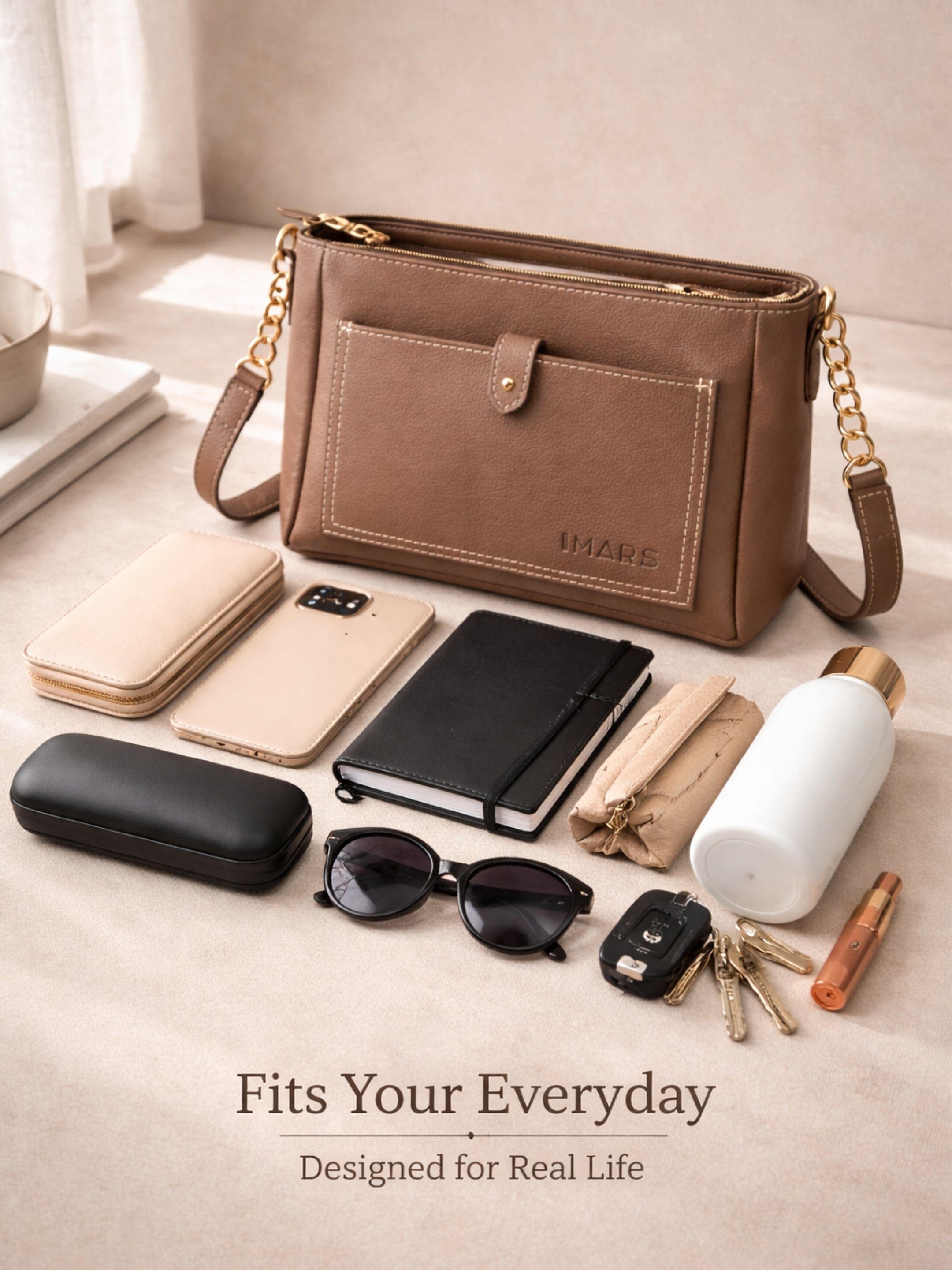• Spacious Main Compartment – Fits daily essentials like phone, wallet, makeup & more