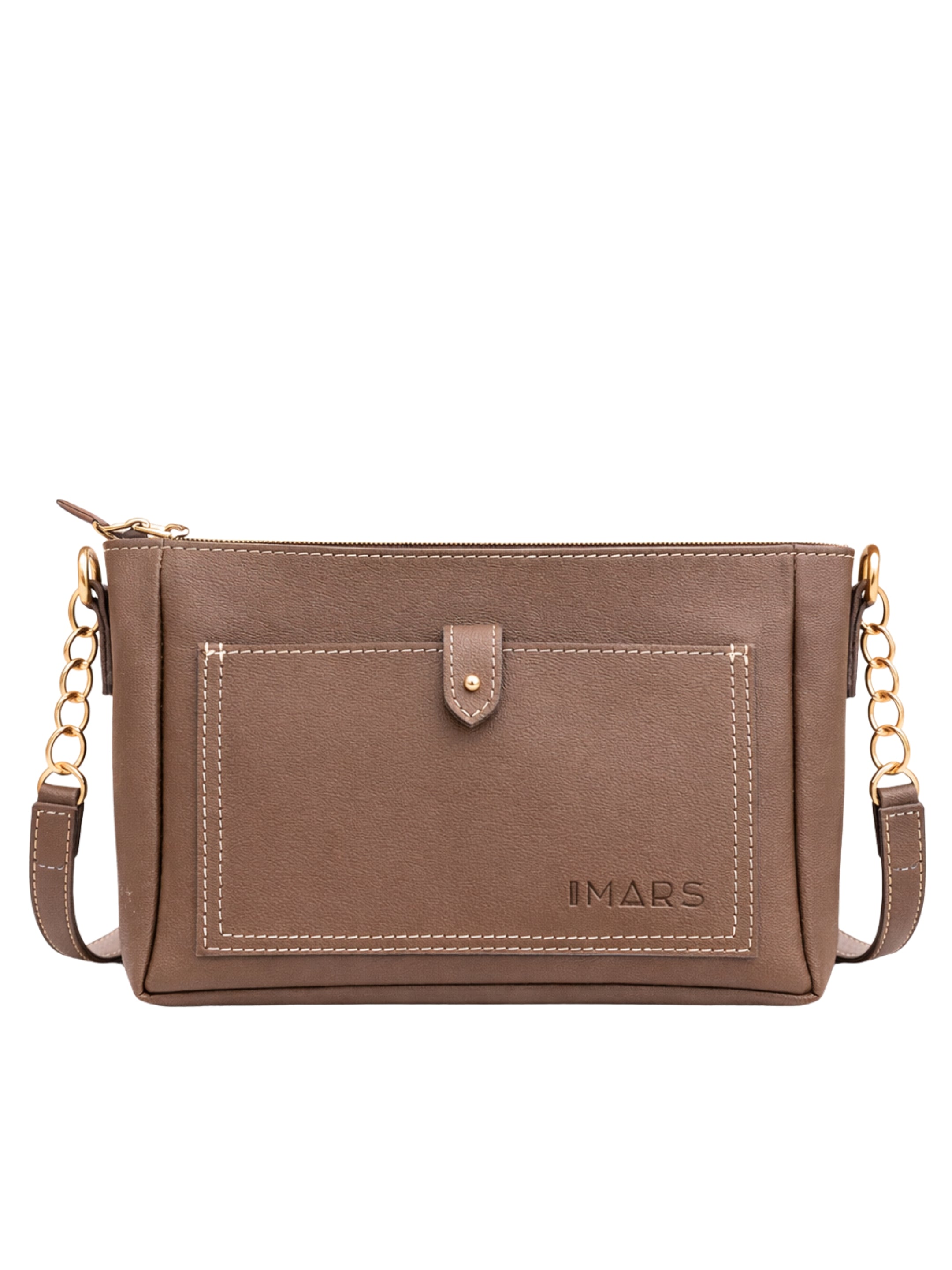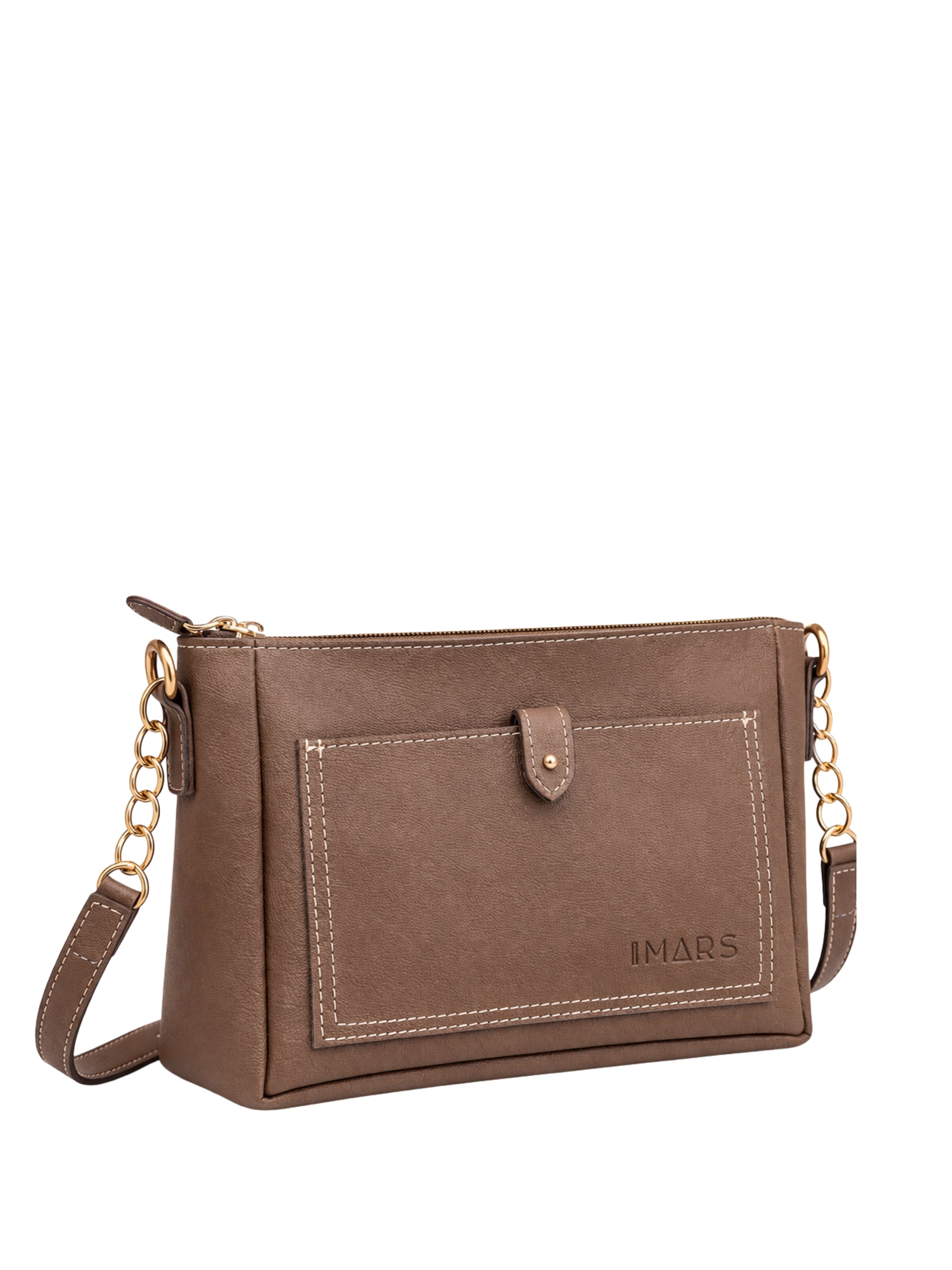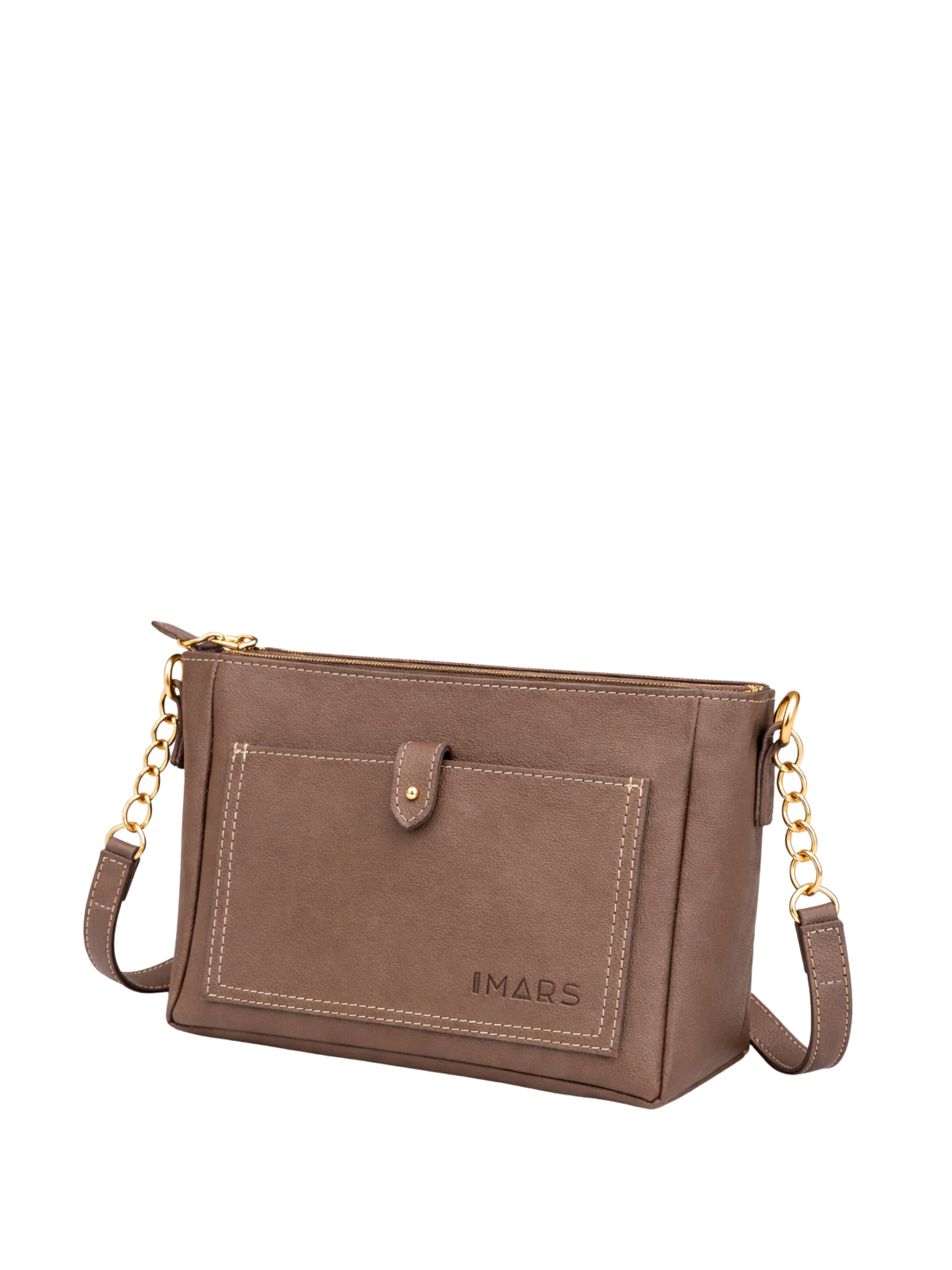 IMARS Women’s Brown Vegan Leather Sling Bag with Zipper Closure | Styl