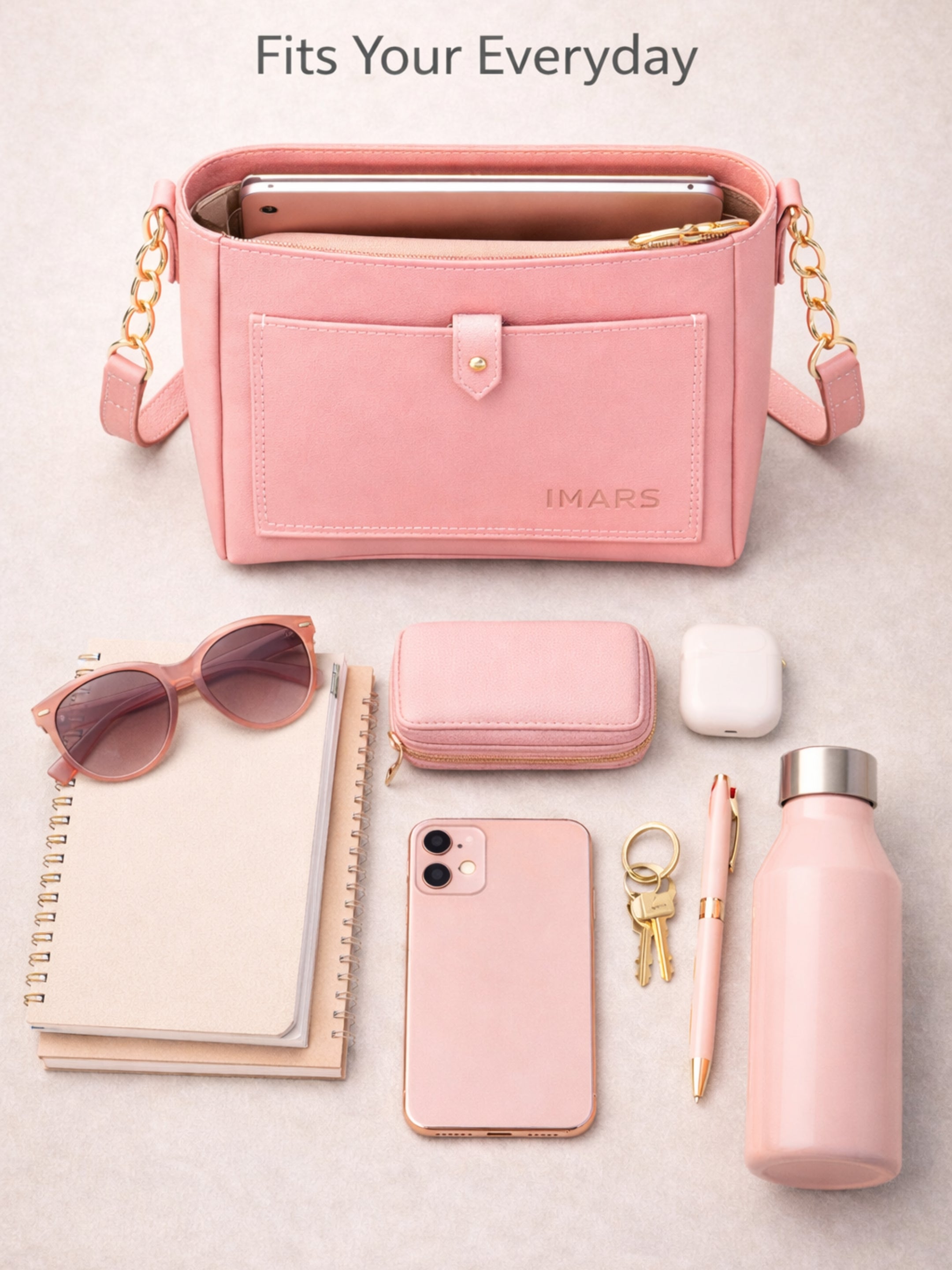 • Spacious Main Compartment – Fits daily essentials like phone, wallet, makeup & more