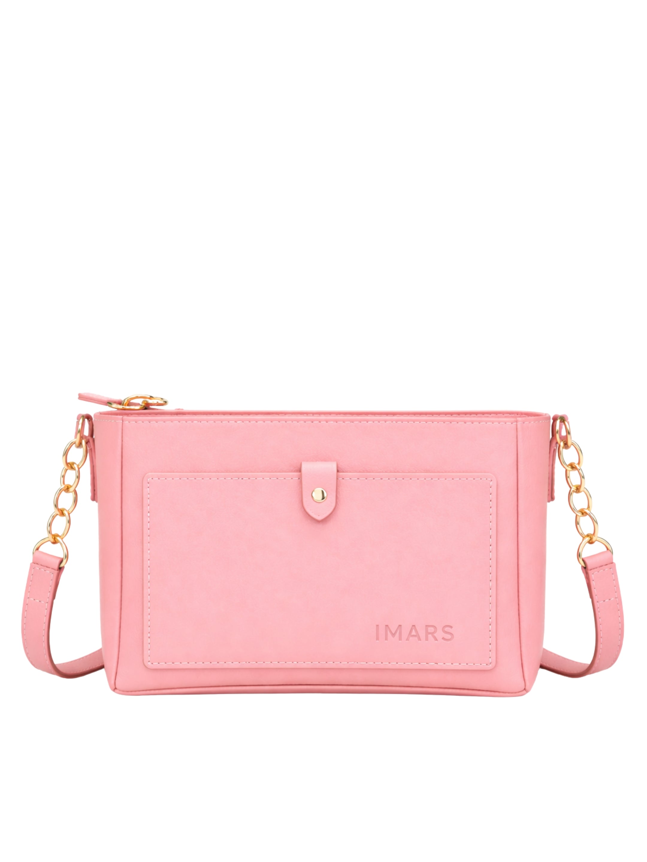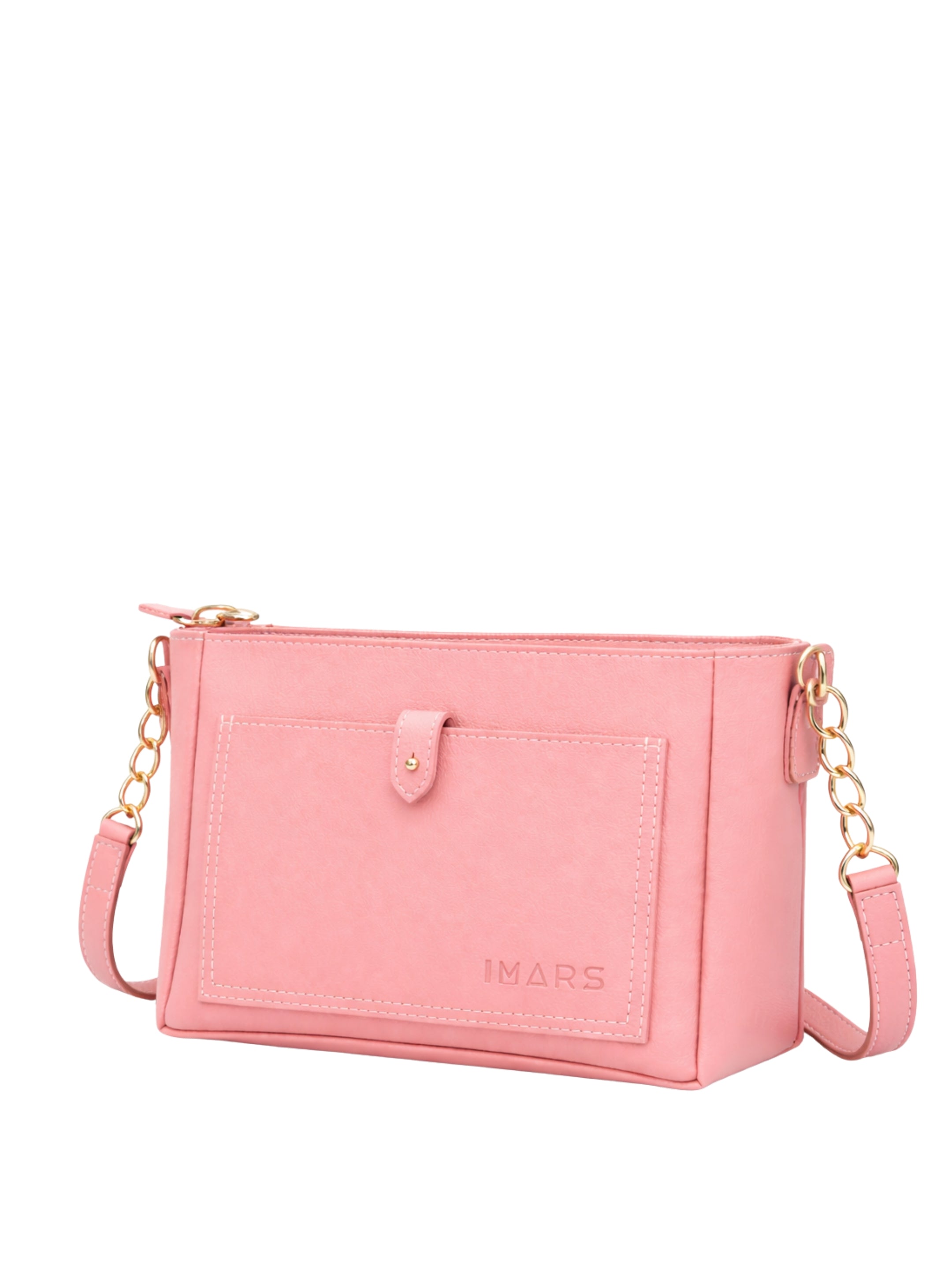 IMARS Women’s Light Pink Vegan Leather Sling Bag with Zipper Closure |