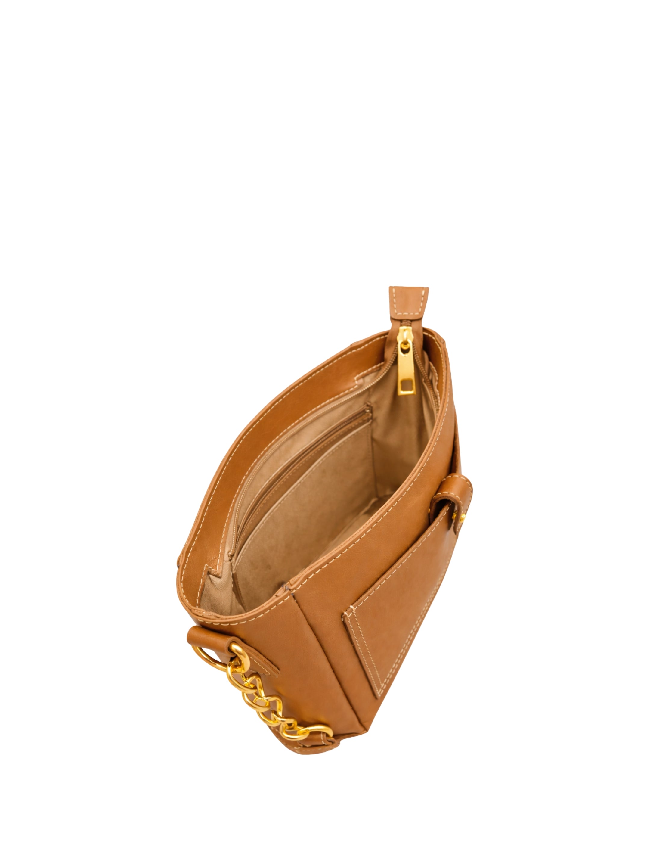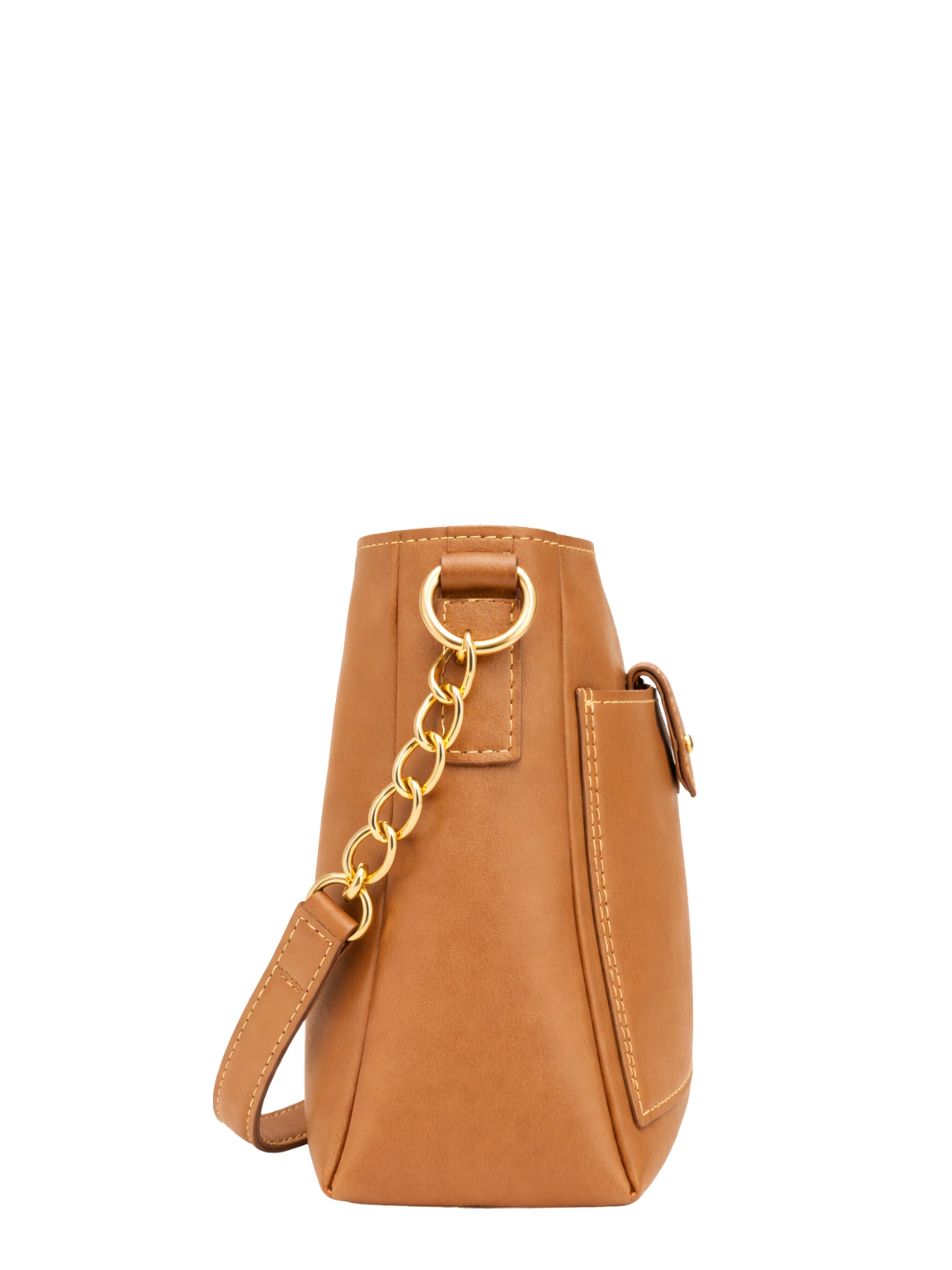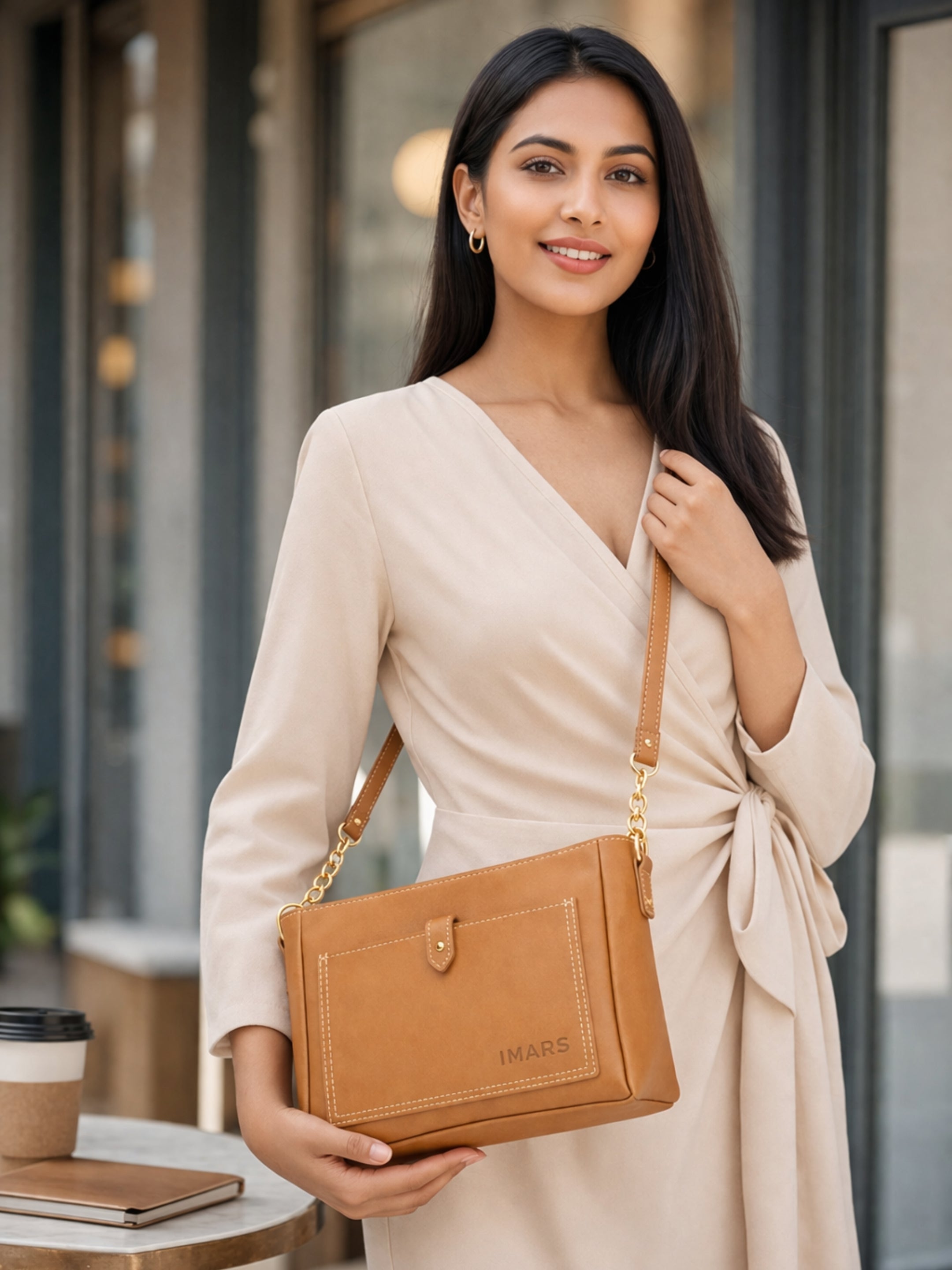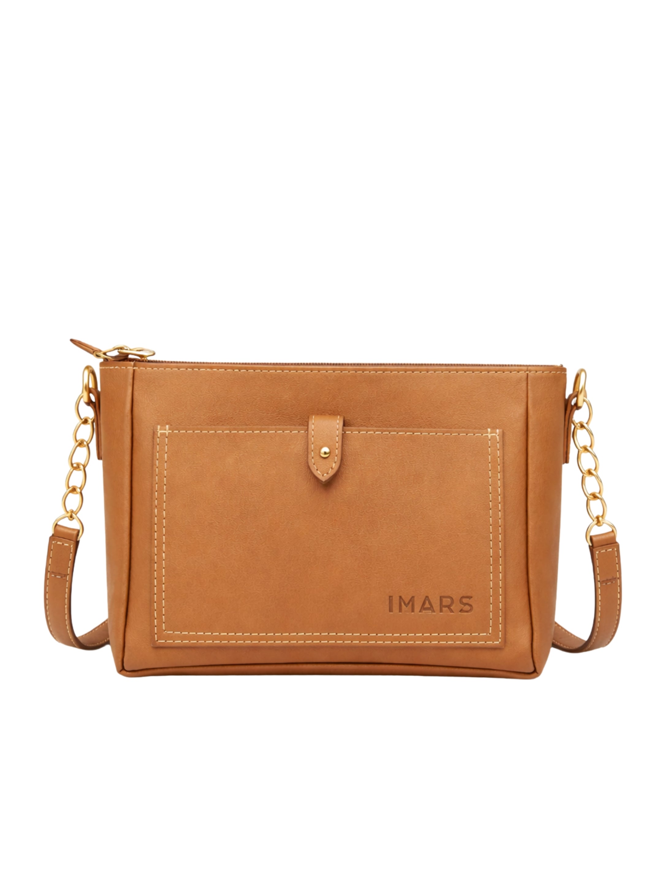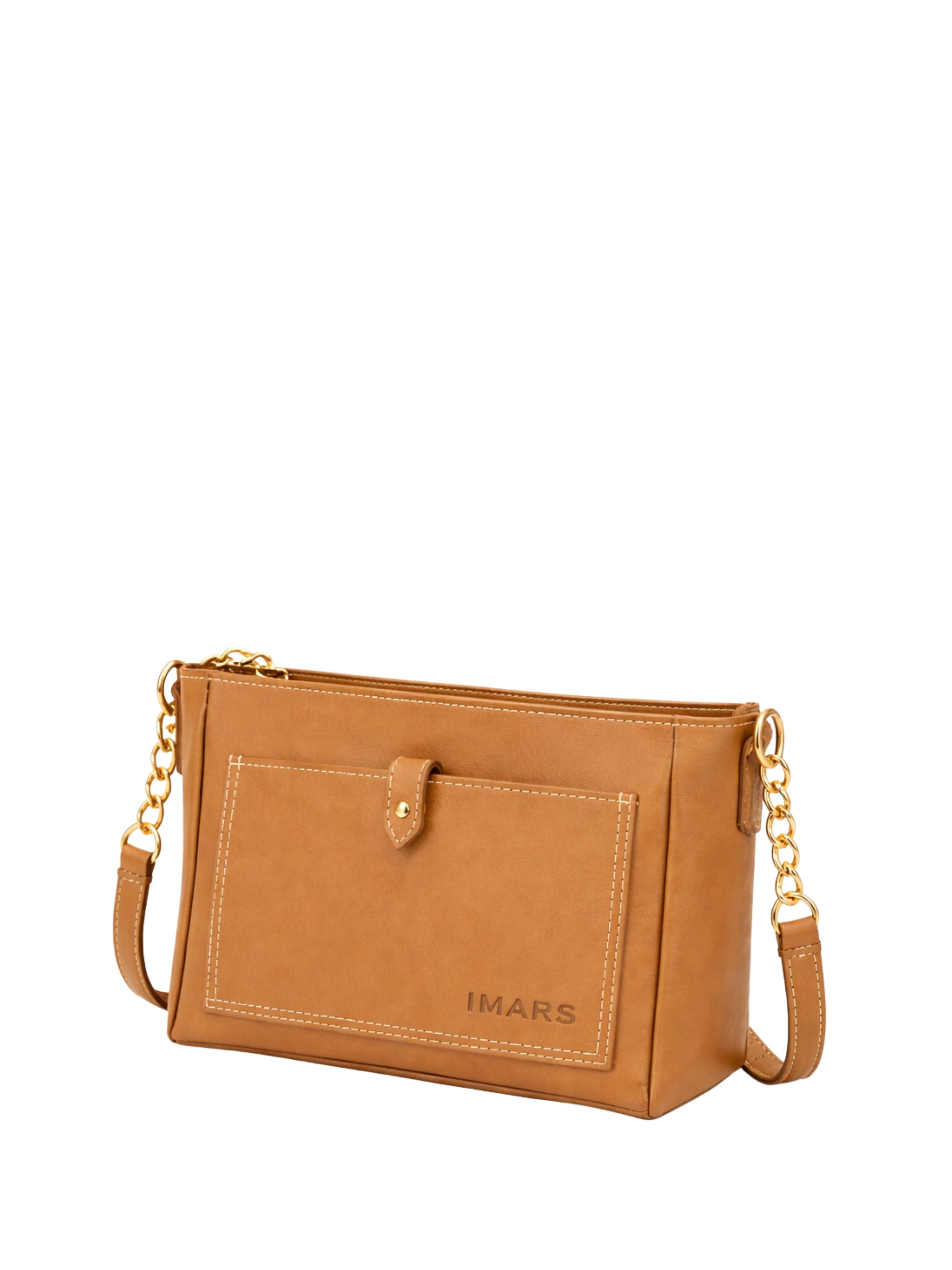IMARS Women’s Tan Vegan Leather Sling Bag with Zipper Closure | Stylis