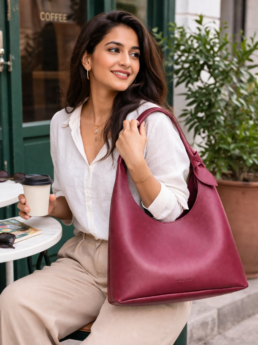 Elegant Shoulder Hobo Maroon Bag For Women & Girls