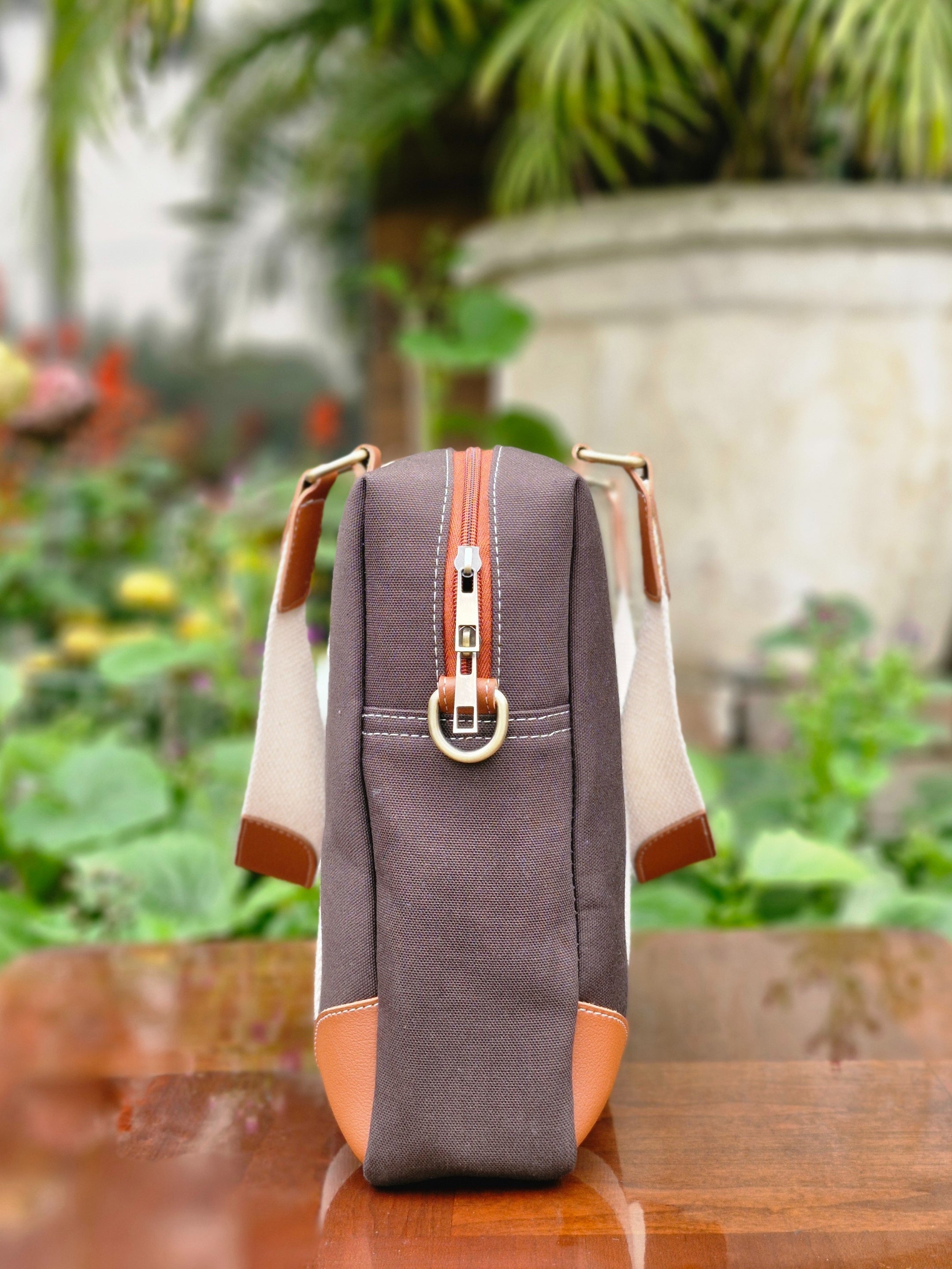 • Durable canvas laptop messenger bag with structured design