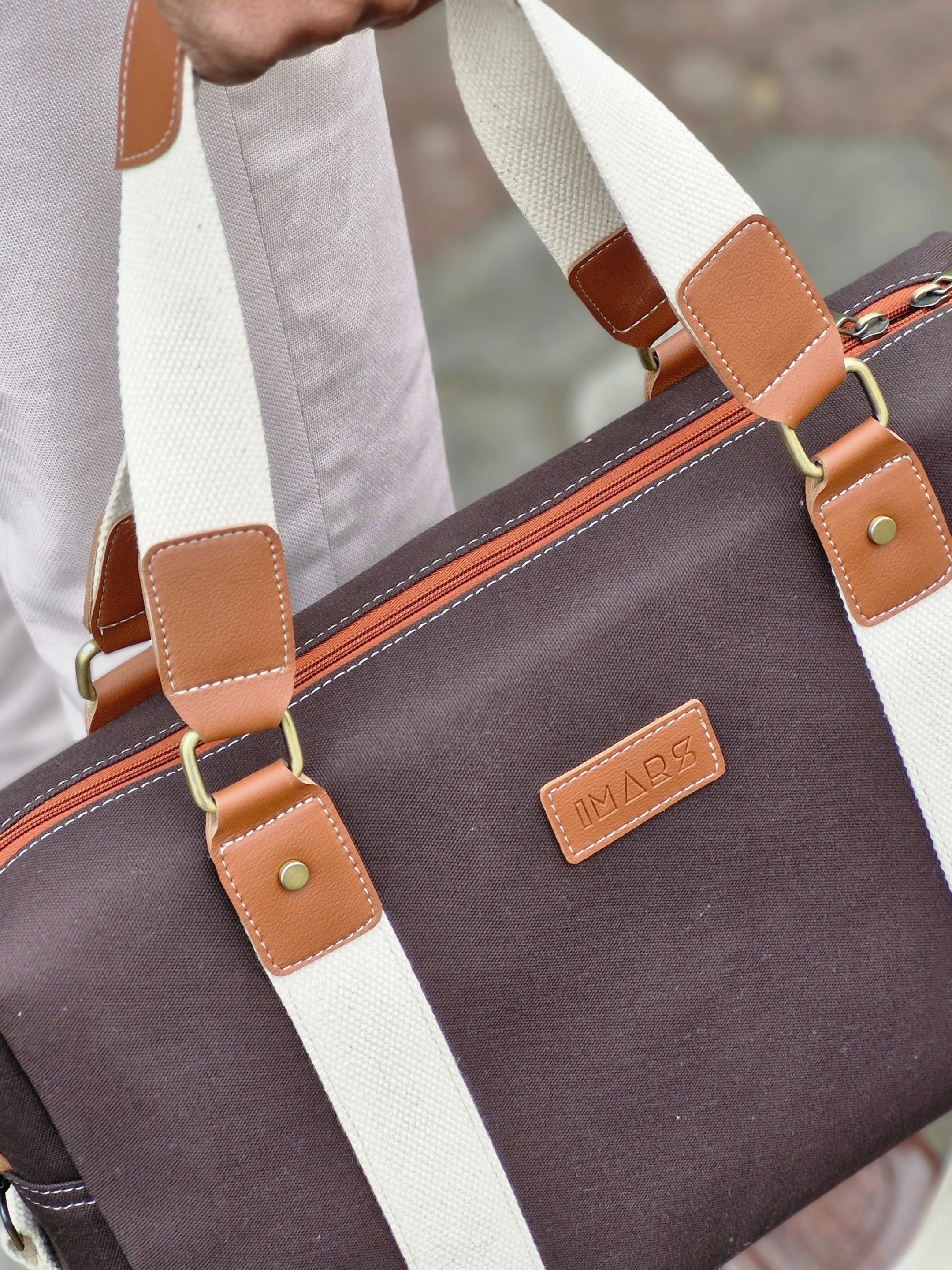 IMARS Canvas Laptop Messenger Bag with Dual Handles & Detachable Strap – Coffee Brown Office & Work Handbag