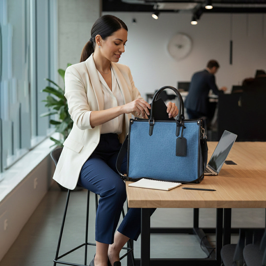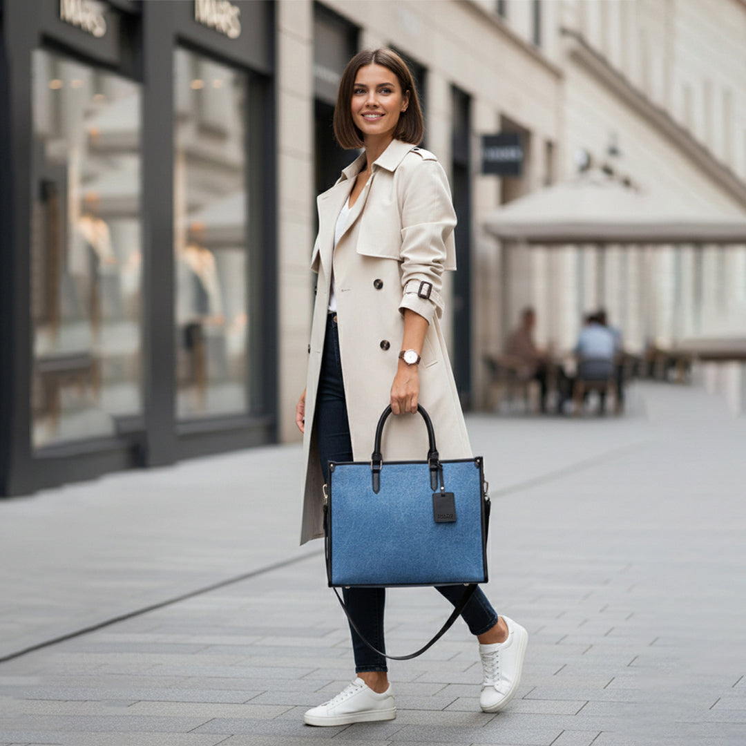Elevate your career style with this premium Blue Denim tote, designed for the modern woman who demands Functional Sophistication. Crafted from high-quality, durable denim with a refined finish, this large-capacity bag is the ultimate companion for both daily office commutes and weekend travel. Its timeless aesthetic provides a perfect balance of Conscious Elegance and rugged durability, ensuring you remain effortlessly chic from the boardroom to the airport terminal. Designed for the multitasking professional, this versatile tote offers a sophisticated take on classic denim, providing Accessible Luxury in a sleek, structured silhouette.